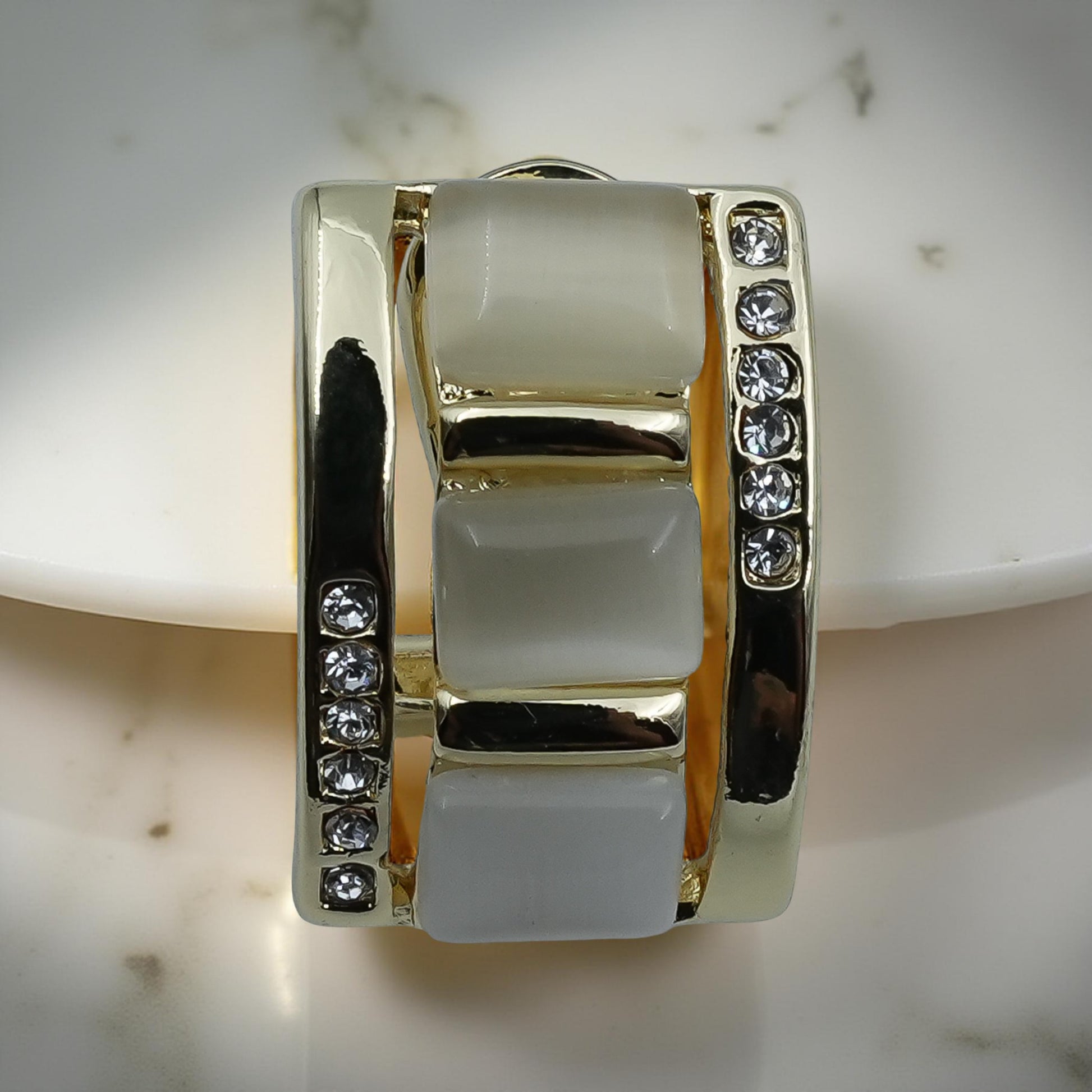 Elevate your look with this premium jewellery set featuring a modern rectangular design embellished with elegant cream cat-eye stones and sparkling CZ diamonds. The smooth glossy stones paired with a rich gold-plated frame create a sophisticated, high-end finish ideal for both everyday wear and festive occasions.