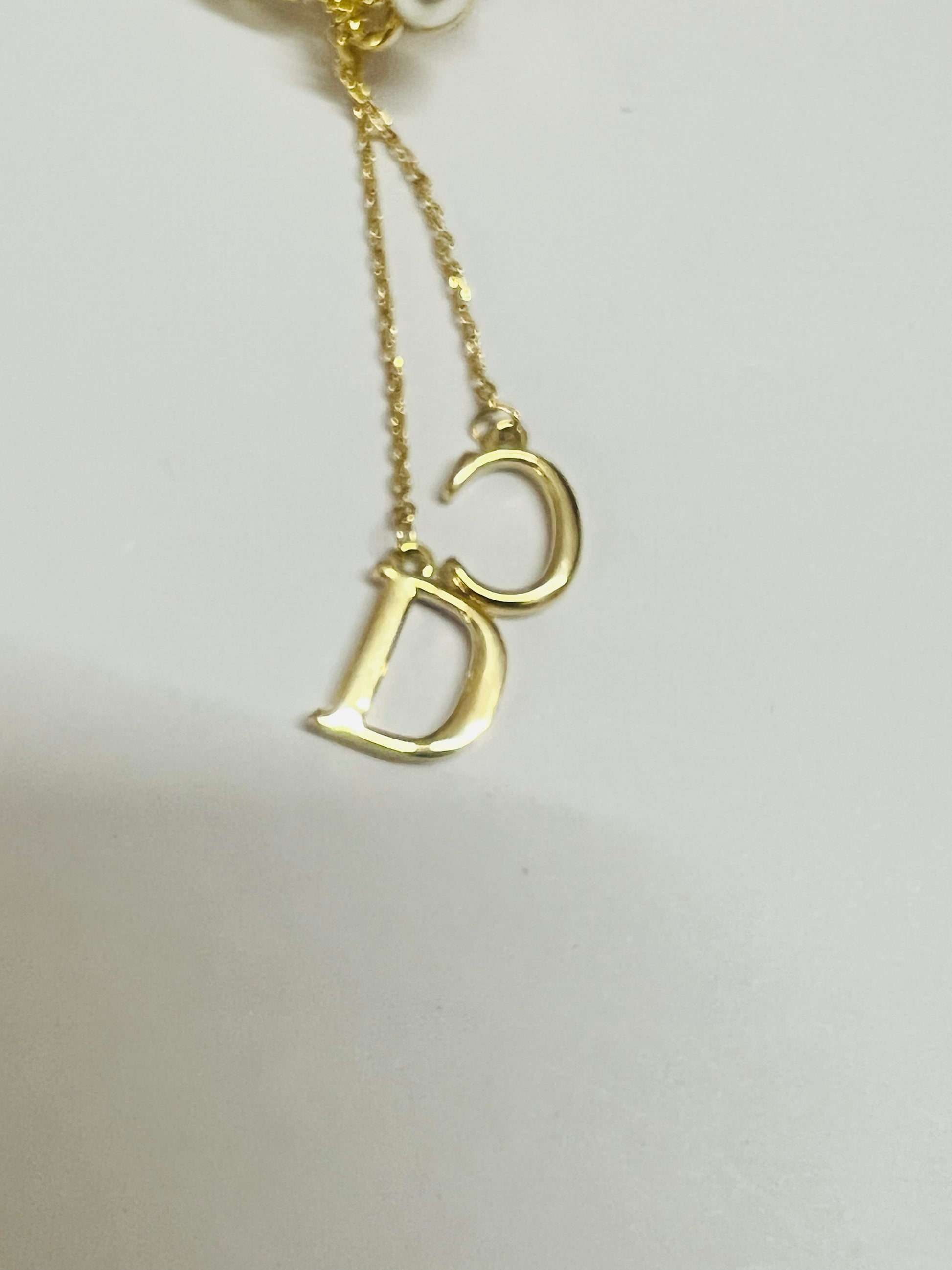 Personalized Dangles: A delicate chain with stylish initial-style charms (e.g., 'D' and 'C') provides a unique, elegant accent.