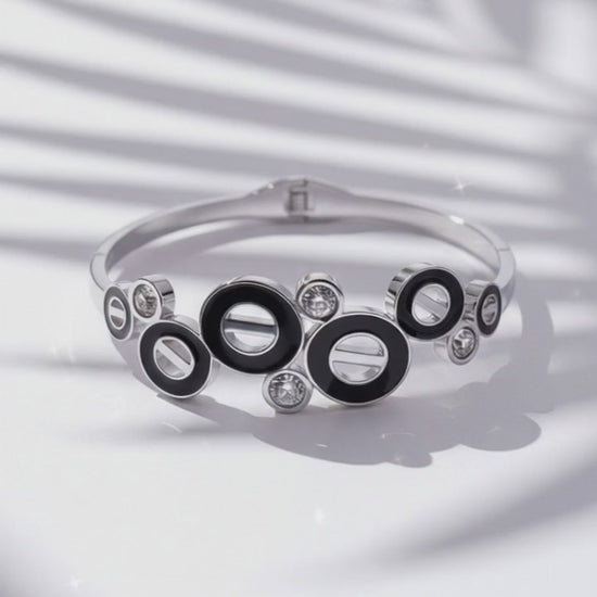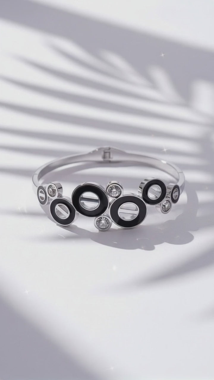 Eclipse Noir Silver Bracelet – Modern Black Enamel & Crystal Designer Cuff